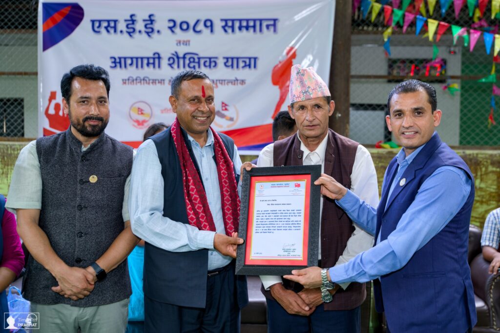 सोही अवसरमा जिल्लाको शैक्षिक क्षेत्रमा उल्लेखनीय योगदान पुर्याउने रेवती सापकोटा, राजेन्द्र शर्मा, नानीमैया थापा, ध्रुब दंगाल, महेन्द्र बहादुर थापालगायत विभिन्न व्यक्तित्वहरूलाई समेत सम्मान गरिएको थियो। जिल्ला शिक्षा समन्वय इकाईका पूर्वप्रमुख कृष्ण सुवेदीलाई प्रतिनिधि सभा क्षेत्र नं १ को “शैक्षिक सल्लाहकार” को रुपमा घोषणा गरी सम्मान गरिएको थियो।