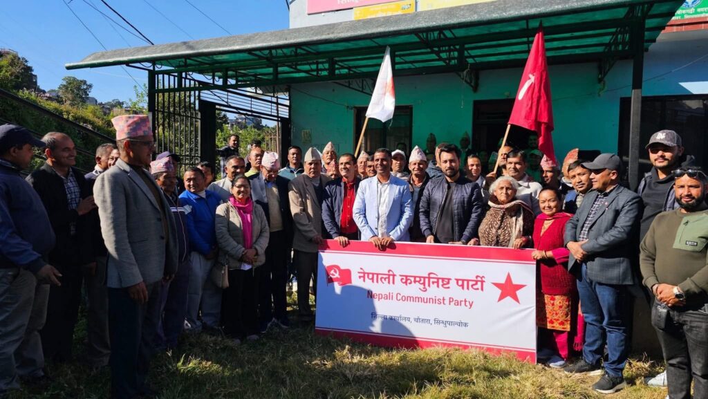 ४ मंसिर , चौतारा– पार्टी एकतापछि कम्युनिस्ट बाहुल्य जिल्लाका रूपमा चिनिएको सिन्धुपाल्चोकको सदरमुकाम चौतारास्थित कार्यालयमा ‘नेपाली कम्युनिष्ट पार्टी’को नयाँ बोर्ड राखिएको छ।