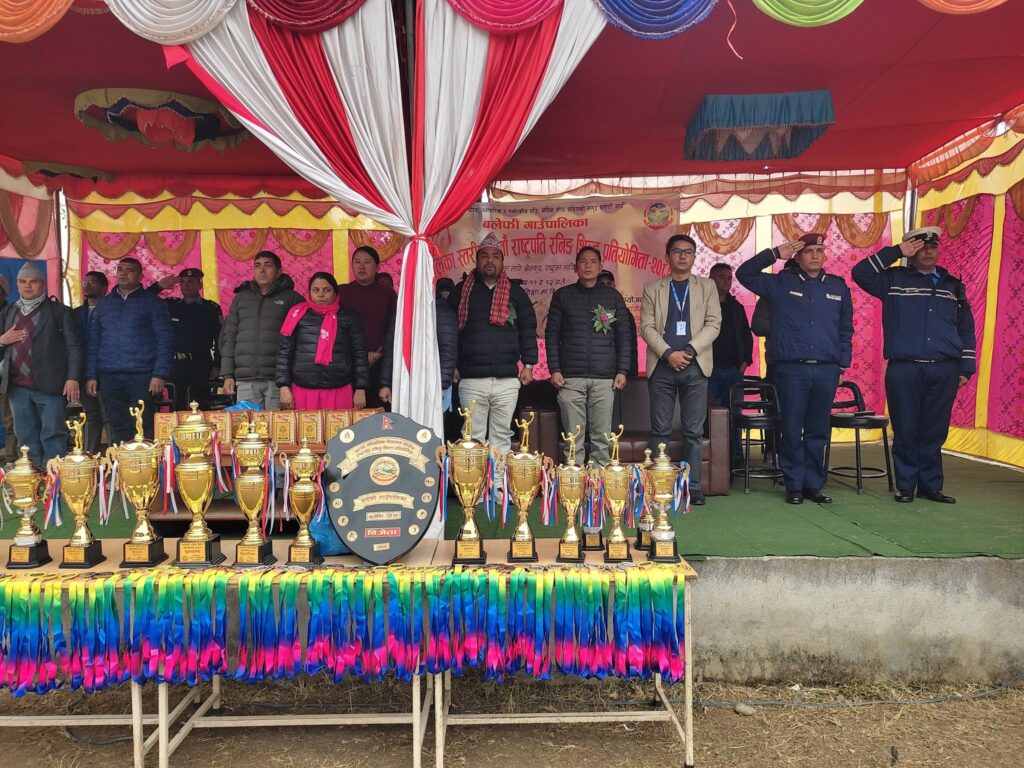 १३ पुस सिन्धुपाल्चोक । बलेफी गाउँपालिका स्तरीय साताैं राष्ट्रपति रनिङ शिल्ड प्रतियोगिता-२०८२ काे उपाधि श्री बाल शिक्षा मावि खाडीचाैरले हात पारेको छ ।